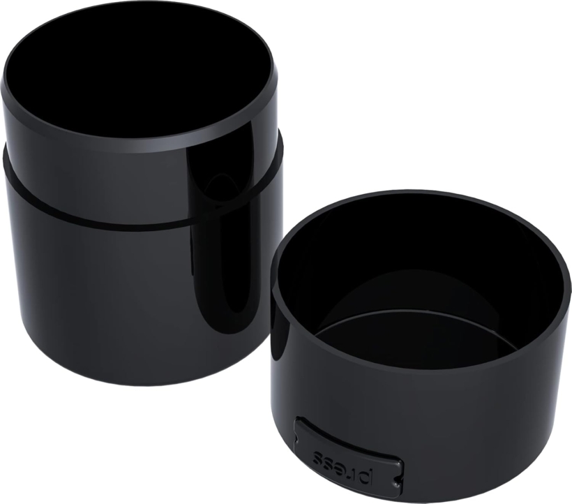 Exclusivo fechamento a vácuo, basta pressionar o botão da válvula para abrir ou fechar o pote. O ar é retirado quando a tampa é pressionada para baixo, conservando o conteúdo por mais tempo e mantendo suas características como aroma e sabor.
